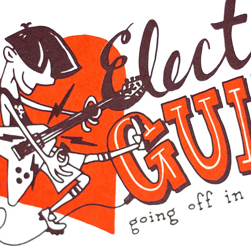 2 Color Print, Dark Brown and Red on French Paper 100# Cover, Pure White.